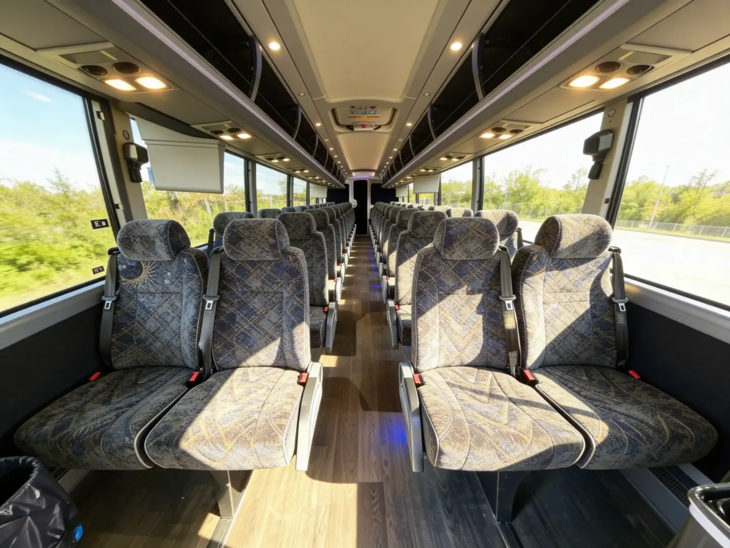 Our Santa Clarita charter buses feature the most in-demand amenities for groups of every size. You can sit back and relax into plush, reclining seats, scroll or stream with onboard WiFi, catch up on emails with personal power outlets, and enjoy on-the-road entertainment with flat-screen TVs. You'll also have the convenience of climate-controlled cabins, spacious overhead storage bays, and Santa Clarita charter buses with restrooms for a smoother ride. Plus, you can choose from a variety of vehicle sizes and amenities to get exactly what your group needs while on the road.